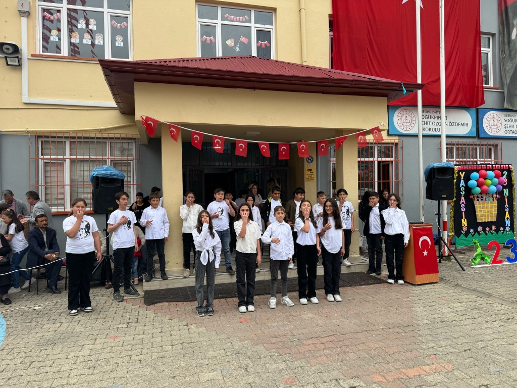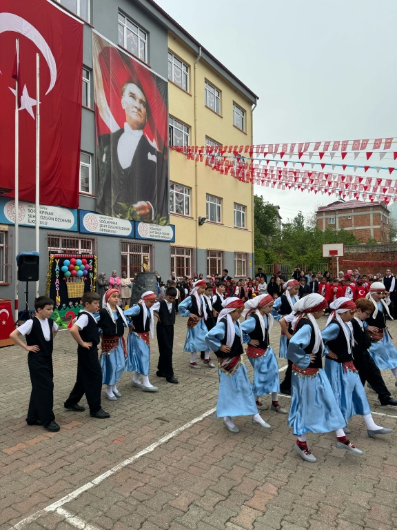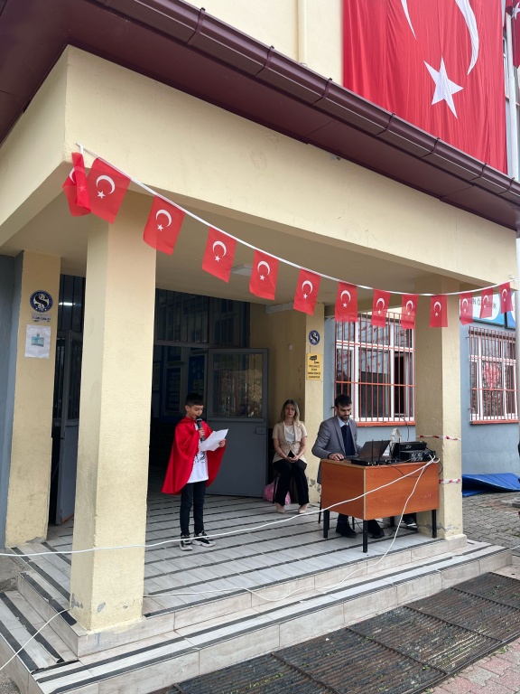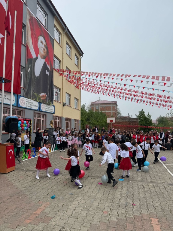 23 Nisan Ulusal Egemenlik ve Çocuk Bayramı ile TBMM açılışının 105. Yıl dönümü dolayısıyla okulumuzda tören ve kutlama programı düzenledi. Sayın belediye başkanımız Mustafa EYİCE, okul aile birliğimiz ve çok sayıda velilerimizin katılım gösterdiği program saygı duruşu ve İstiklal Marşı'mızın söylenmesiyle başlayarak okulumuz öğrencilerimizin hazırlamış olduğu gösterilerle ve yarışmalarla devam etti.Yarışmada 1. Olan öğrencilerimize hediye takdimi yapıldıktan sonra program ikramlarımızla son buldu. Programımıza katılan Sayın Belediye Başkanımız, Okul Aile Birliğimize, tüm velileirmize ve program dahilinde emeklerinden dolayı öğretmen ve öğrencilerimize teşekkürlerimizi sunarız.