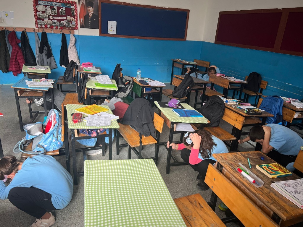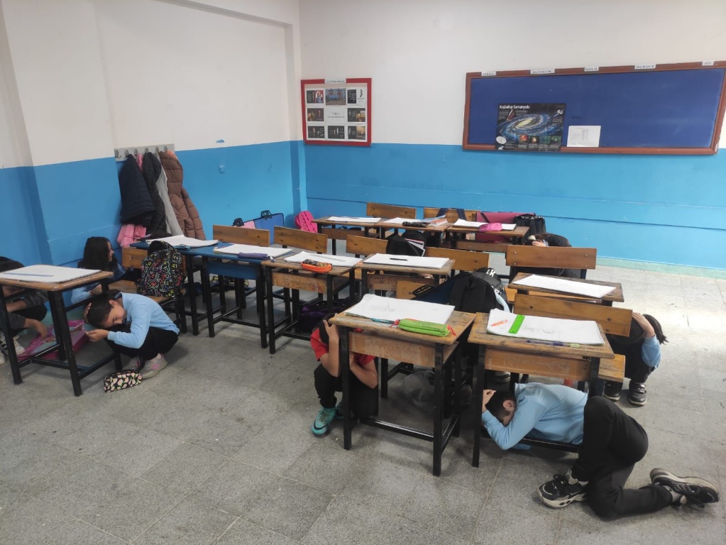 Okulumuzda tüm öğretmen ve öğrencilerimizin katılımı ile deprem tatbikatı yapıldı.